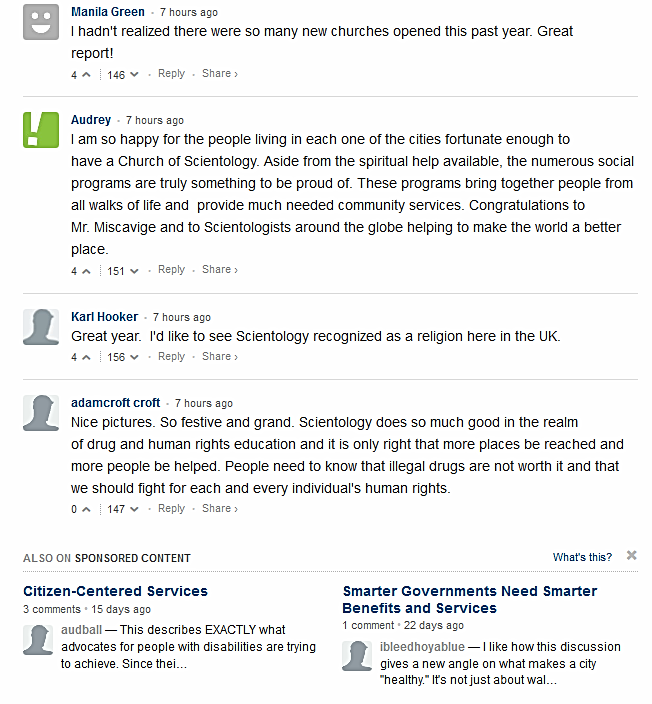 And the comments from Atlantic readers were so positive and numerous that the comments section had to be shut down lest Atlantic servers overheat and crash! Here is just a sample of the praise Atlantic readers lavished upon the Church of Scientology and COB RTC David  Miscavige: