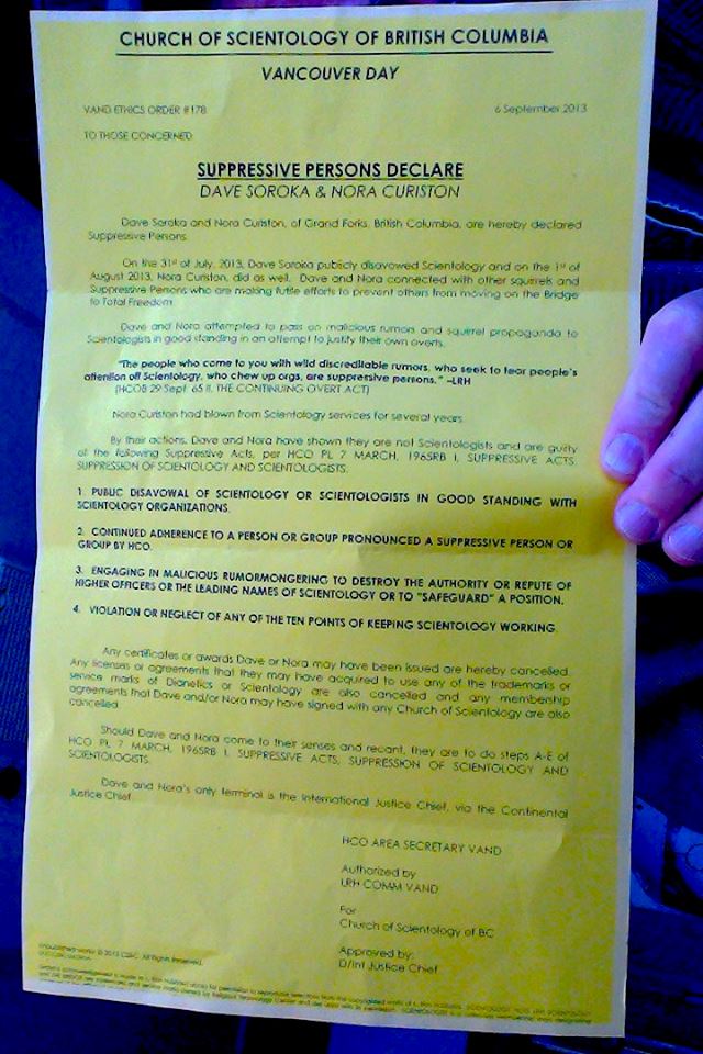 Situation: I have been member of the Church of Scientology for almost 30 years and I still did not receive my SP-Declare although I cancelled my membership last October.