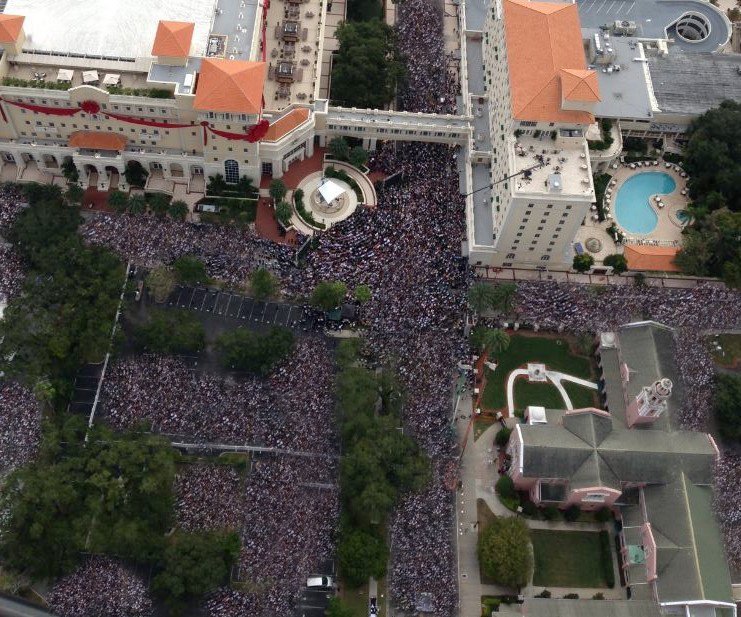 Crowds estimated at 25,000,000 Scientologists swarmed the new Flag Building during COB RTC David Miscavige’s speech to open the facility. Photo courtesy of Johnny Tank at the criminally suppressive Underground Bunker