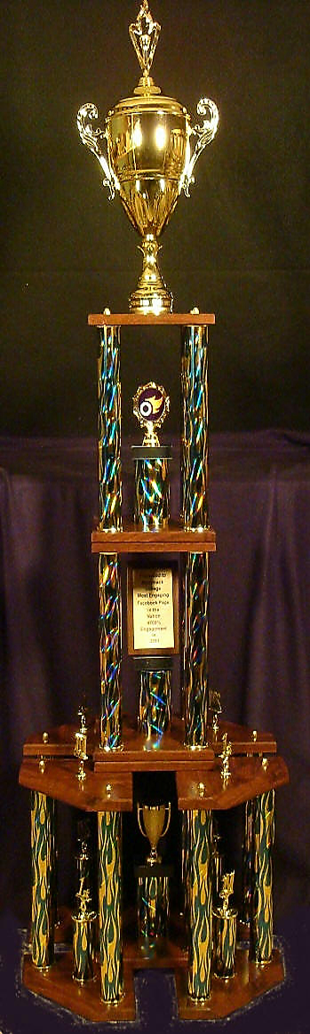 The new Multipurpose IAS Status Trophy is a handsome two meter tall (six feet) trophy that features a programmable digital display which allows IAS Patrons to program the trophy to be any type of trophy they want and need.