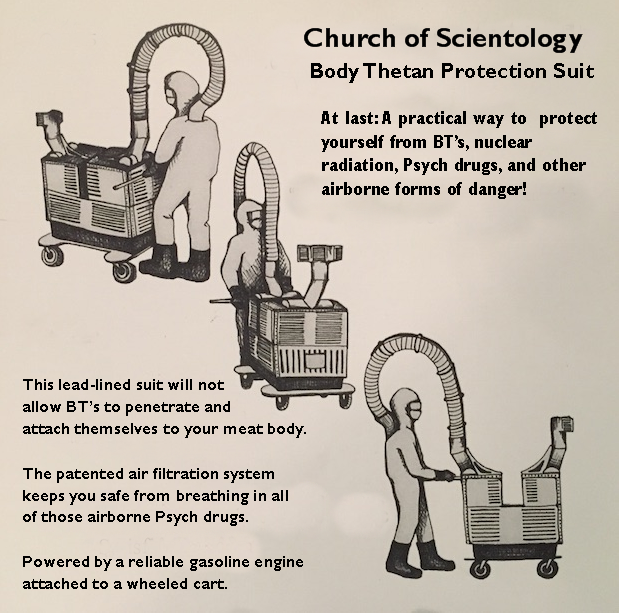 Wow, I didn’t realize we were making the very same suits used at our Finical Instruments Containment Facility available to the public. This is the only place RTC certified to store large sum of financial instruments per LRH policy. You see it has come to our attention that all currency is infected with BTs. After much study of recently discovered missing tech! Which was just recently uncovered during a routine visit to a Swiss Bank Safety Deposit Box. We have determined that BTs are attracted to money like Regs on wednesday evening. LRH conducted a huge amount of research into this area collecting and safely storing millions of samples in-order to study and analysis. He discovered that not only does every financial instrument have BTs but how to create a BT proof financial instrument . And we at RTC have fully duplicated this method and are introducing clear money!!! ACTION: All OTIII and above are hereby ordered to send all their money, gold, silver, stock certs and equivalents to the IAS Financial Storage Area. All Money and financial instruments must be received no later than Thursday at 2pm. They will receive in-exchange an equivalent amount of IAS Clear money*. This action will be a monumental step in Planetary Clearing with a finial step of all Planetary Financial Instruments being safely stored at FICF thus a planet cleared of dangerous BT infested WOG money! *Please note: clear money will not be accepted for Services, Accommodations or IAS status upgrades!