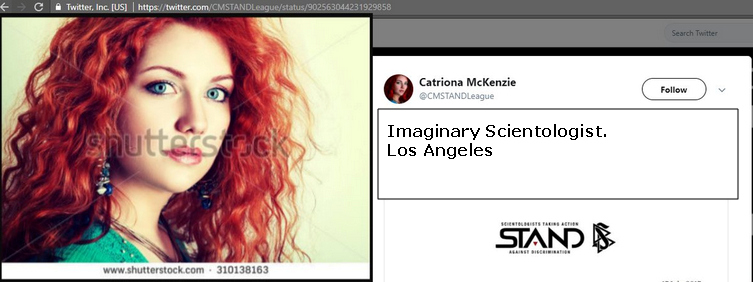 Second, Catriona McKenzie is a stock photo Scientologist, i.e. she is not real and is rather a completely fake Scientologist used by STAND. But that’s not the point. The point is this: If Catriona McKenzie were a real Scientologist she would be outraged!