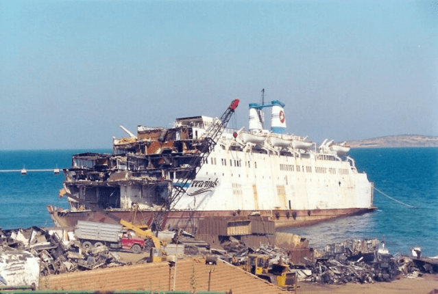 “Captain Napier had left orders for the ship to be ‘scraped‘ as in ‘scrape off the barnacles and the hull in preparation for painting.’ However, Ensign Vörös, whose native language is Hungarian, read the telex incorrectly and had the vessel immediately scrapped in a shipbreaking yard in Colombia.”
