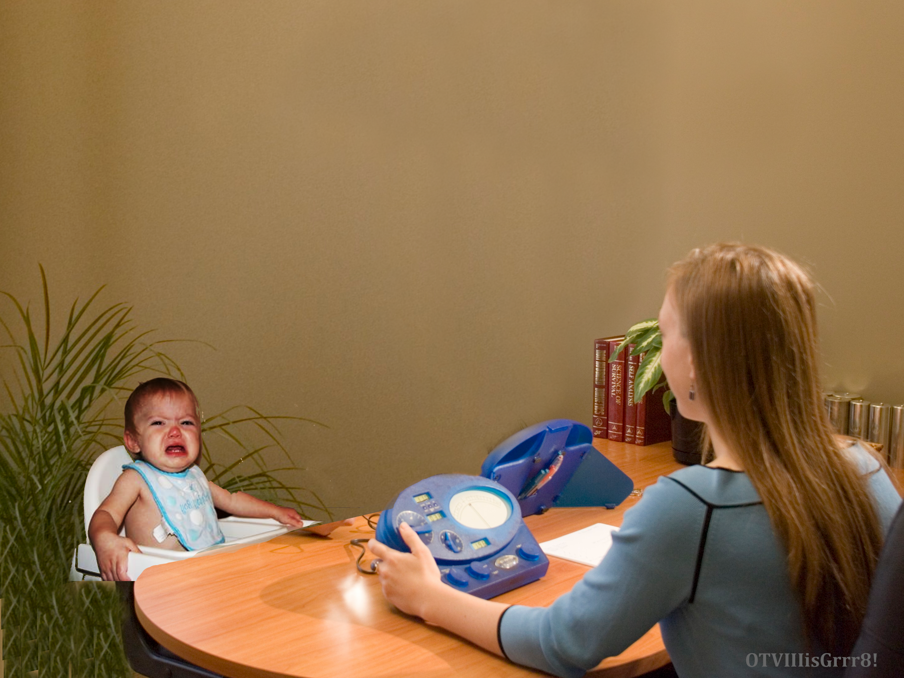 “This was Benjie’s attempt to expose his mother to Black PR,” explained Ken Delusion. “Benjie, you see, is actually a trillion year old evil space alien thetan in a baby body. We know this for a fact because Benjie refuses to pick up the cans of the e-meter for a sec check. Only a criminal with evil purposes would refuse a sec check. This little deadbeat has a lot to hide!”