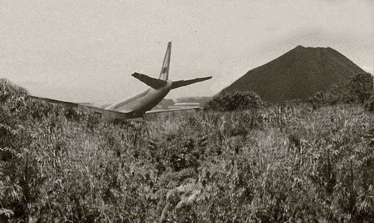 After using hundreds of bulldozers and over a million tons of dynamite to clear cut over one million acres of pristine Andean rain forest, Dr. Delusion and his team today discovered an intact DC-8 spaceplane that crash-landed 75,000,000 years ago near one of the principal volcanoes of Earth.