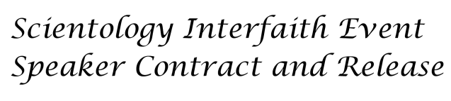 In exchange for the valuable consideration of the enormous personal prestige and valuable reputational benefits that will accrue to me as a designated Scientology Interfaith speaker, I agree to the following terms and conditions: