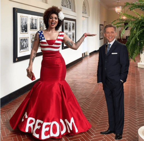 I am also overjoyed (no pun intended) to she her in a photo with Capt’n Mr. David ‘We Stand Tall’ Miscavige. Surely she must be on the verge of being fired off on an important Sea Organization Mission to not only crush Suppression and make more inroads into the Trump Administration. Myself, I’m wondering why Princess Joy has not been named as a replacement for that wog Sarah Sanders. Princess Joy, armed with the tech and incredible confront, could easily do a better job. And, she’s a better dresser for sure!!!!!