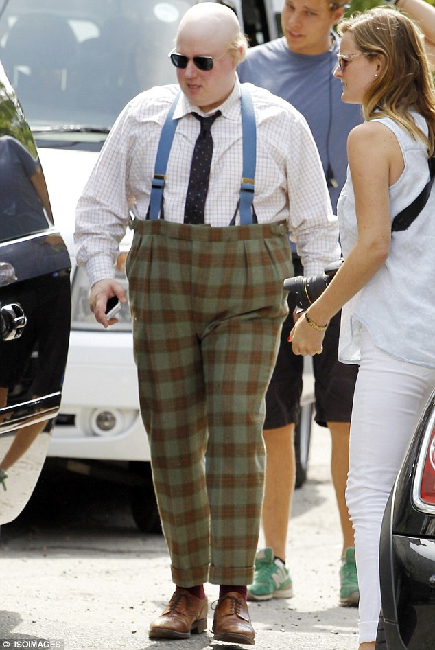 Add a red nose and big oversized shoes then he will appear natural.