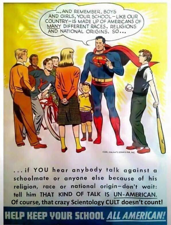 We at Freedom Magazine denounce Superman as a bigot and a hater. He talks “All American” and “religious tolerance” in his PR, but then attacks the Scientology religion!