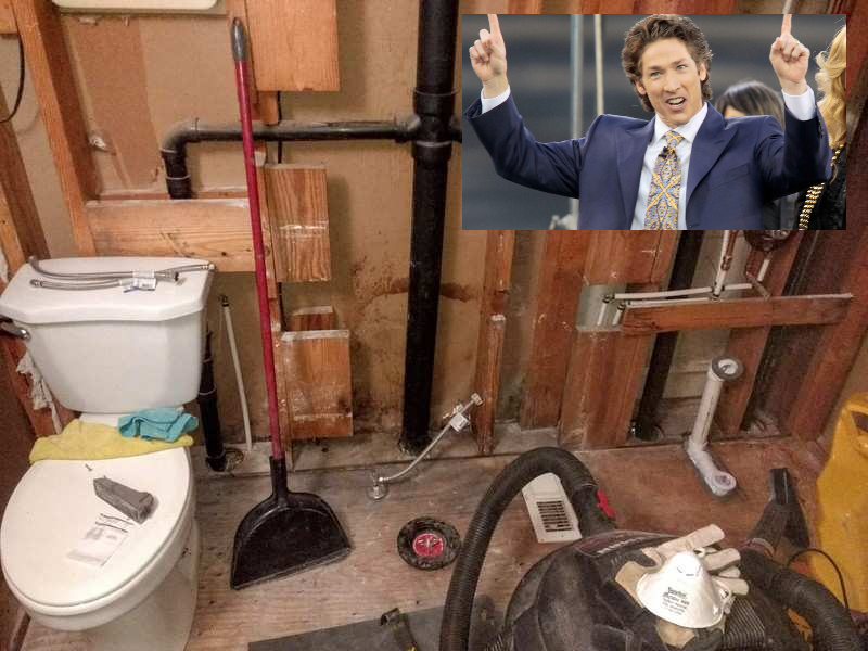 Upon learning that a janitor found $600,000 in cash and checks hidden inside a bathroom wall in Joel Osteen’s church, Scientology leader David Miscavige has ordered all bathroom walls in Scientology ripped open in search of hidden stashes of money.
