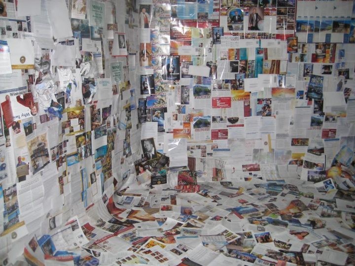 In a stunning new exhibit at the Celebrity Centre, Scientology artist Delphi Kwarinteen showcases the cluttered and glistening patina of what she calls “ready made for the recycling bin” Scientology mass mailers. Scientologists are hailing the exhibit as a tour de force of Hubbard Postmodernism.